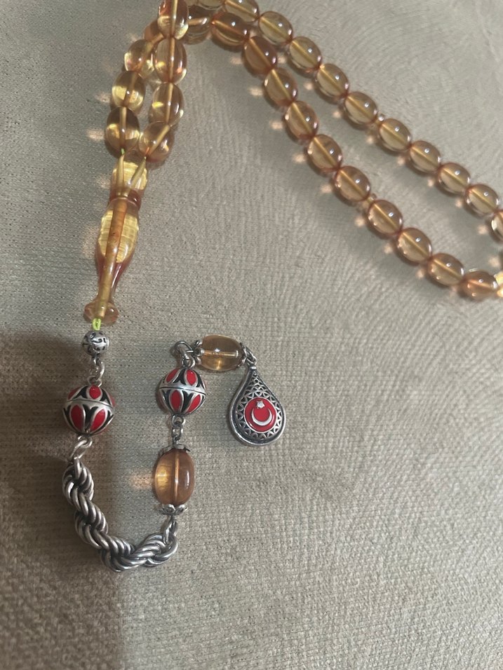 Parlak altın renkli, bohem tarzda tasarlanmış, gümüş ve kırmızı detaylı erkek tesbih boncukları. Pürüzsüz ve saydam boncuklarla süslenmiştir.✨