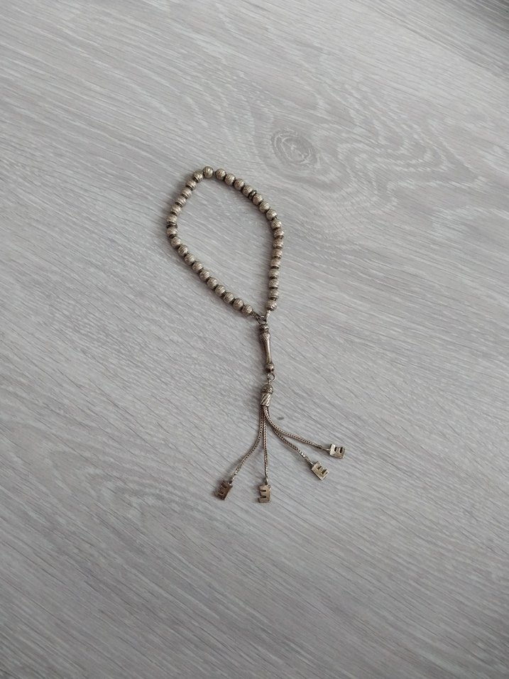 Tesbihin iç zinciri dahil tamamı gümüştür.El yapısıdır.