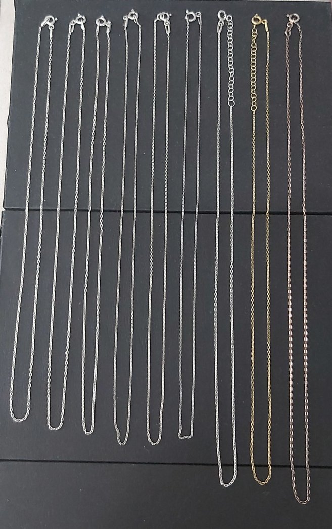 925 Ayar Gümüş 9 Adet Zincir. İnce Ve Farklı Uzunlukta, Kolye Uçlarınızla Kullanalabileceğiniz Zarif Zincirler. Ayrı Ayrı Veya Toplu Şekilde Alabilirsiniz. 400 TL Adet Fiyatıdır. 1 - 39 cm 2 - 3 - 40 cm 4 - 5 - 6 - 42 cm 7 - 45 cm 8 - 45 cm Gold Renktedir. 9 - 46 cm