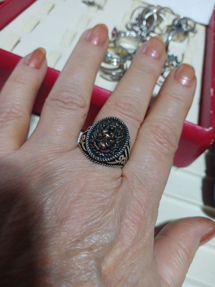 925 aslan detaylı bohem tasarımlı vintage erkek yüzüğü, özgün ve klasik bir stil sunar. 12.73 gr ölçü 21