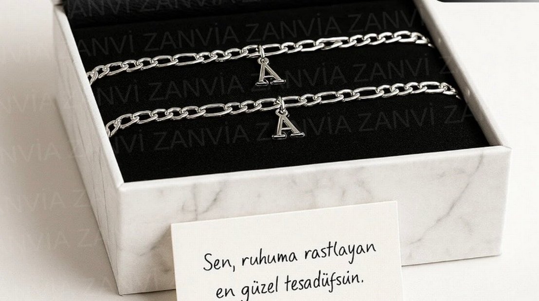 925 GÜMÜŞ HARF DETAYLI ÇİFT BİLEKLİĞİ