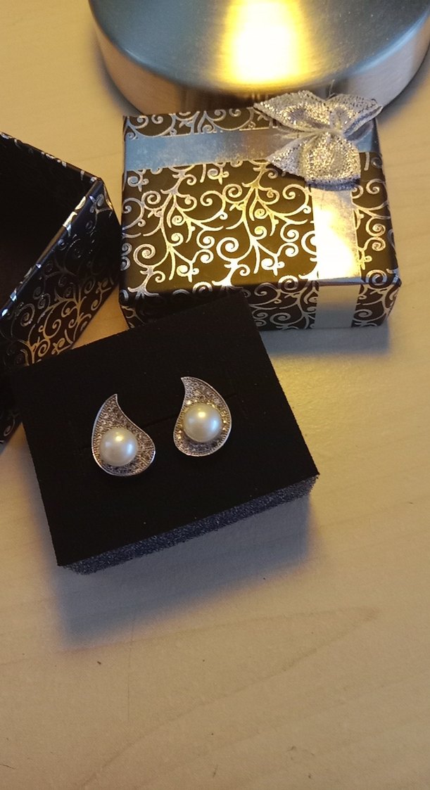 925 gümüş, damgaları mevcut. İnci ve taşlı küpe. Taşlarında düşme vb. sorun yoktur. Çok kaliteli ve ağır bir küpe.