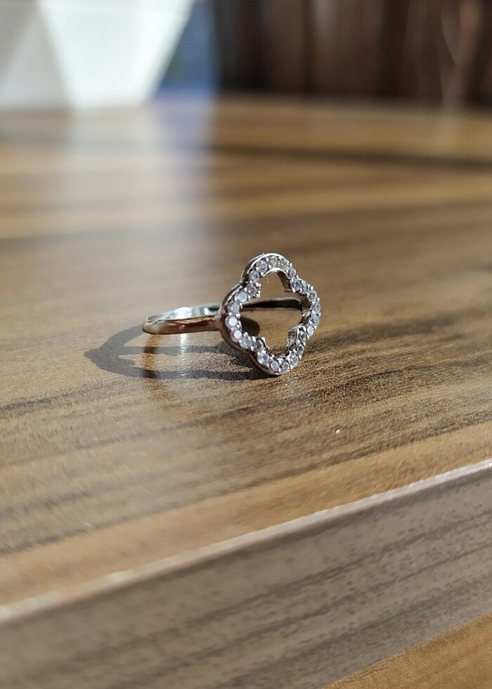 925 ayar gümüş yonca yüzük. 12 numaradır, küçültme işlemi yapıldığı için içinde ayar kısmı gözükmüyor.