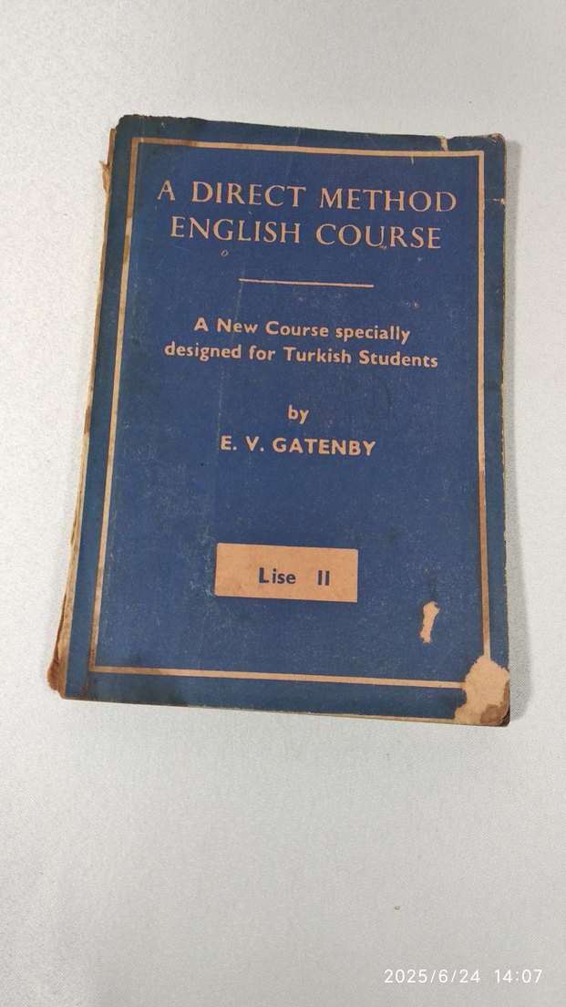 E.V. Gatenby tarafından Türk öğrenciler için özel olarak hazırlanmış A Direct Method English Course adlı ders kitabı. Kapak kısmı yıpranmış durumda. 1970 / SAHAFLIK kitap