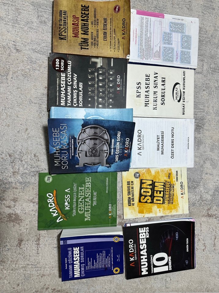 Muhasebe ve KPSS sınavına hazırlık için soru bankaları ve kapsamlı çalışma kitaplarından oluşan set.