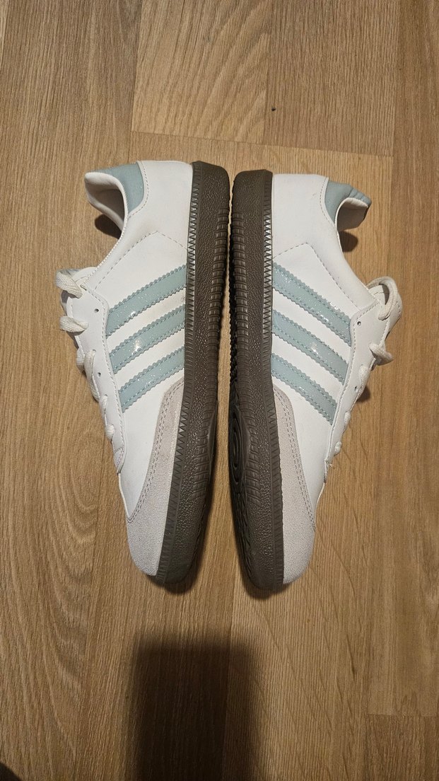 Adidas Samba En Zor Bulunan Renk. Bir tane daha bulamazsınız. Parlak simli turkuaz renk çizgili. Orijinalinin birebir aynısıdır. A kalite işçiliğe sahiptir. Sıfırdır. Son adettir. Her kombini güzelleştiren bir modeldir. KAÇIRMAYINIZ