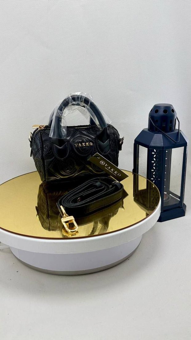Siyah deri, baskılı desene ve kemer detayına sahip kadın çantası, modern klasik ve sokak stilini birleştirir. Günlük kullanıma uygundur.