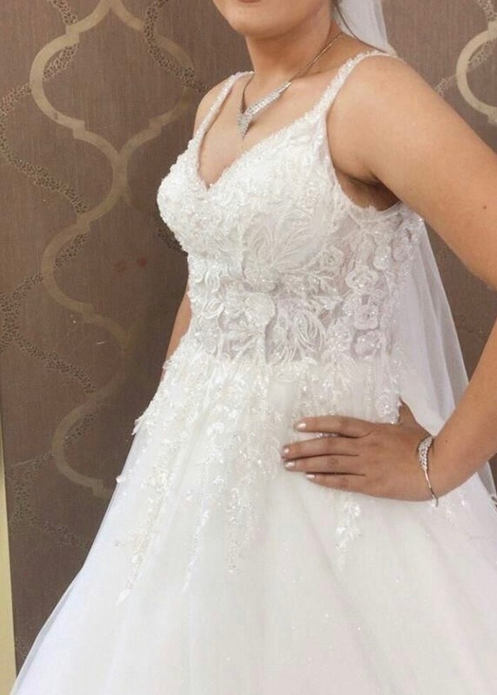 Bir kez giyildi kuru temizlemesi yapıldı tertemiz üründür. A kesim 38 bedendir. Antalya Ella Wedding’ten alınmıştı.