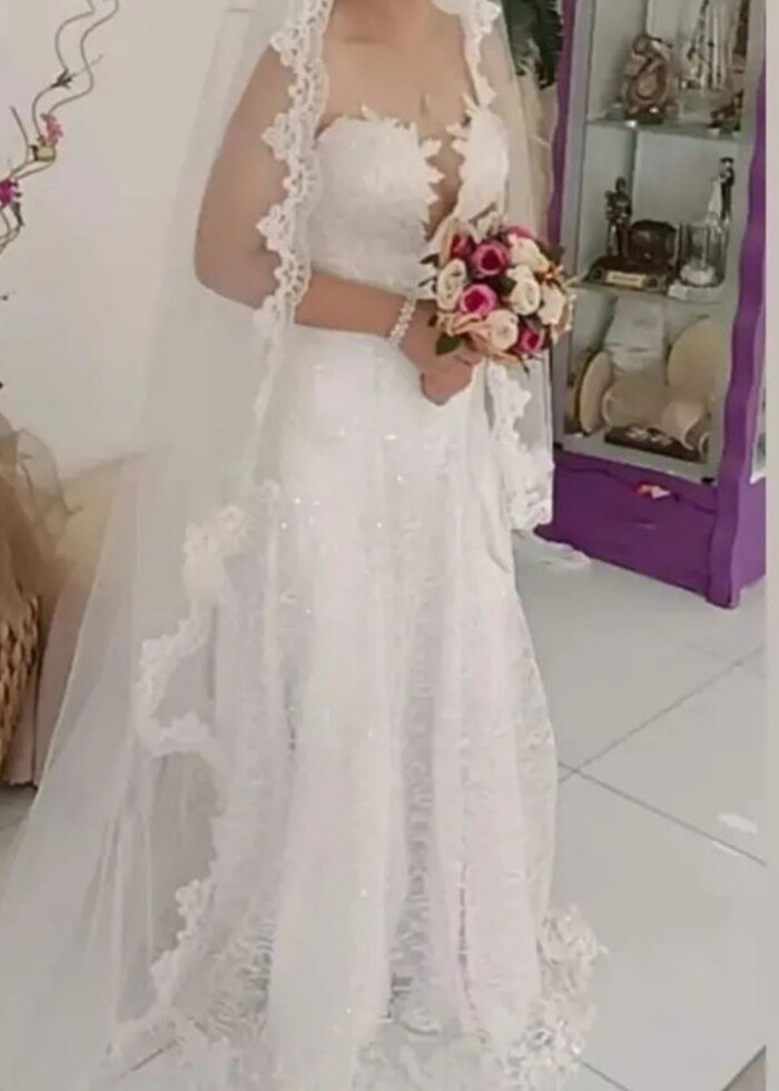 Dantelli gelinlik dantelli duvak 38 beden birkez nikahta giyildi