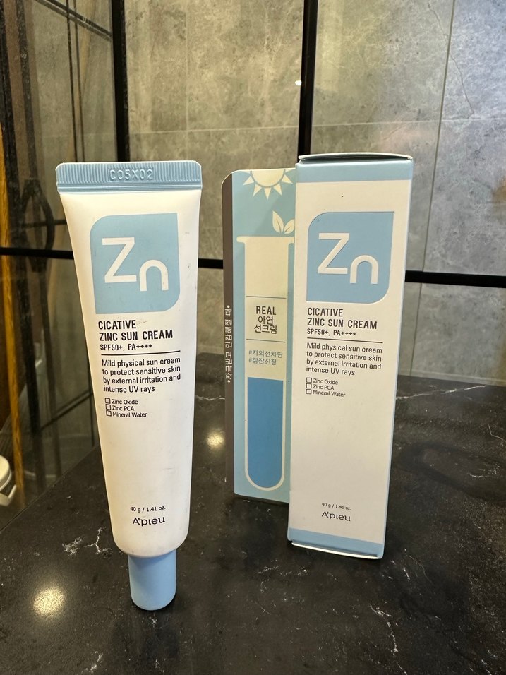 A'Pieu CICATIVE Zinc Güneş Kremi SPF50+ PA++++ 40ml, hassas cildi yoğun UV ışınlarından korur. Çinko oksit ve çam hücre suyu içerir, hafif ve yatıştırıcıdır. ☀️ Yarısı kadar kullanıldı, denemek isteyen için ideal. Ekim ayında açıldı.