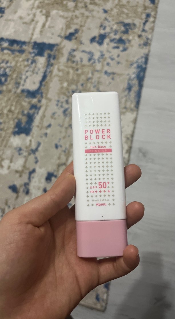 A'pieu Power Block Güneş Bazı, SPF 50 koruma ve PA+++ ile cildi güneşin zararlı etkilerinden korur. Hafif yapılı ve pembe kapaklıdır. ☀️