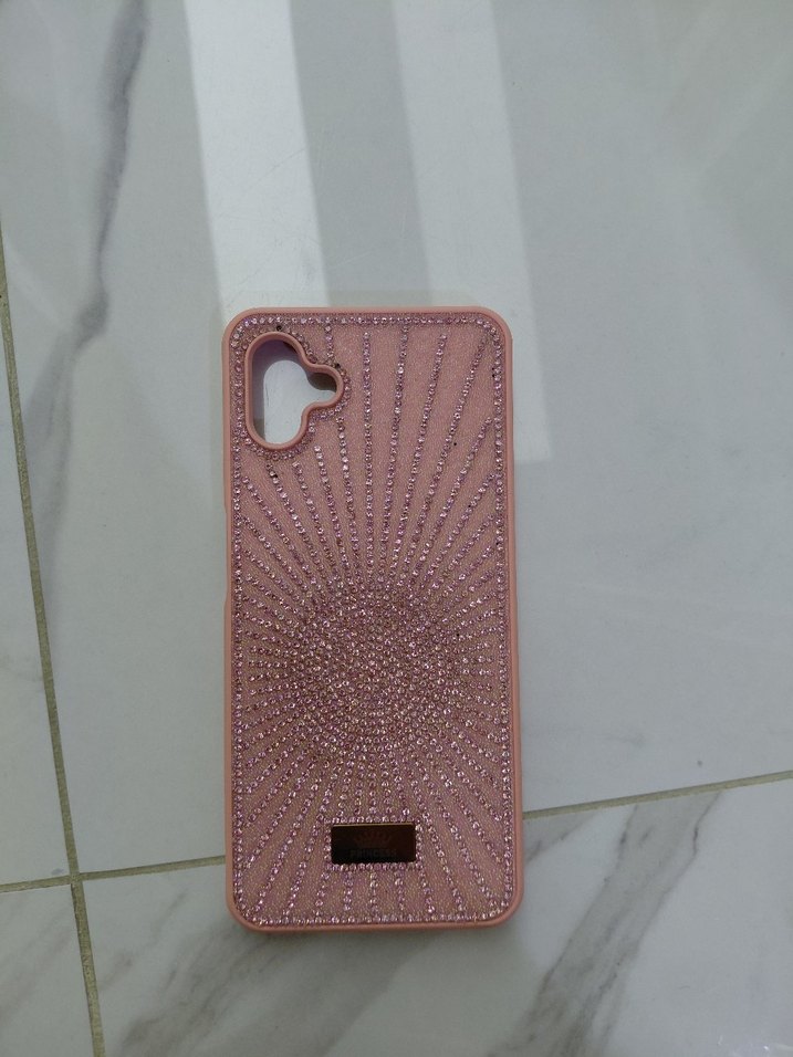 Pembe renkli, payetlerle süslenmiş, çağdaş tarzda telefon kılıfı. Telefonunuza ışıltılı bir dokunuş katar.