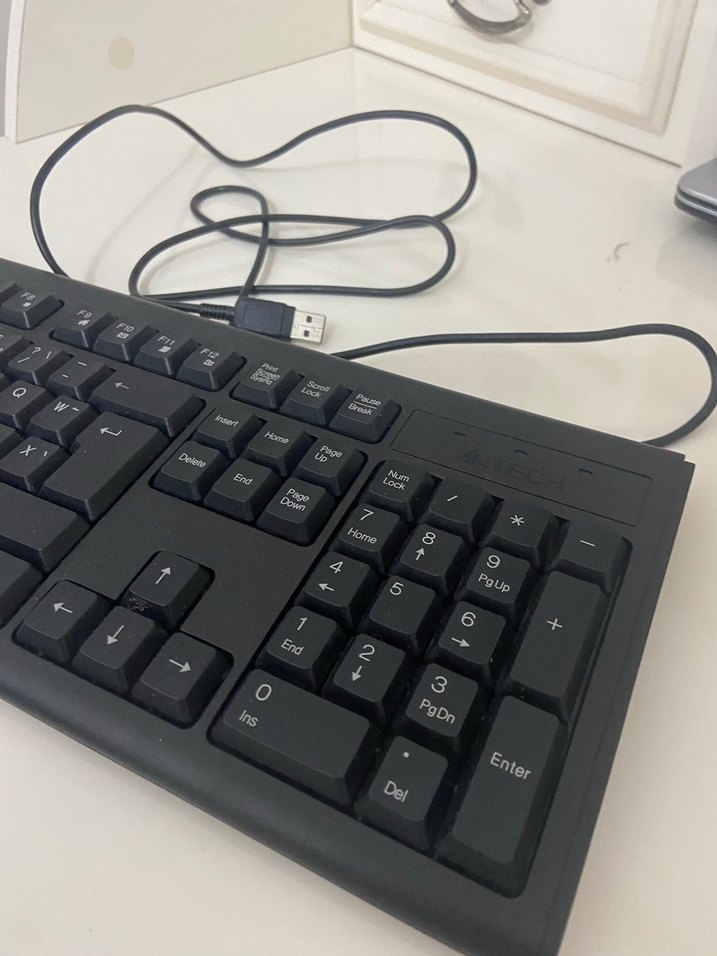 USB kablolu, sayısal tuş takımı ve standart tuşlara sahip siyah masaüstü klavye. ⌨️ Katipliğe hazırlanmak için almıştım vazgeçtiğim için satıyorum, neredeyse hiç kullanılmadı..