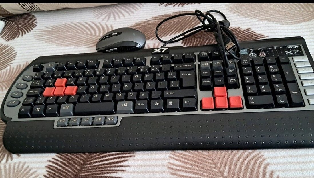 Kırmızı detaylı ve kablolu karanlık renkli klavye. Konforlu yazma deneyimi sunar. ⌨️