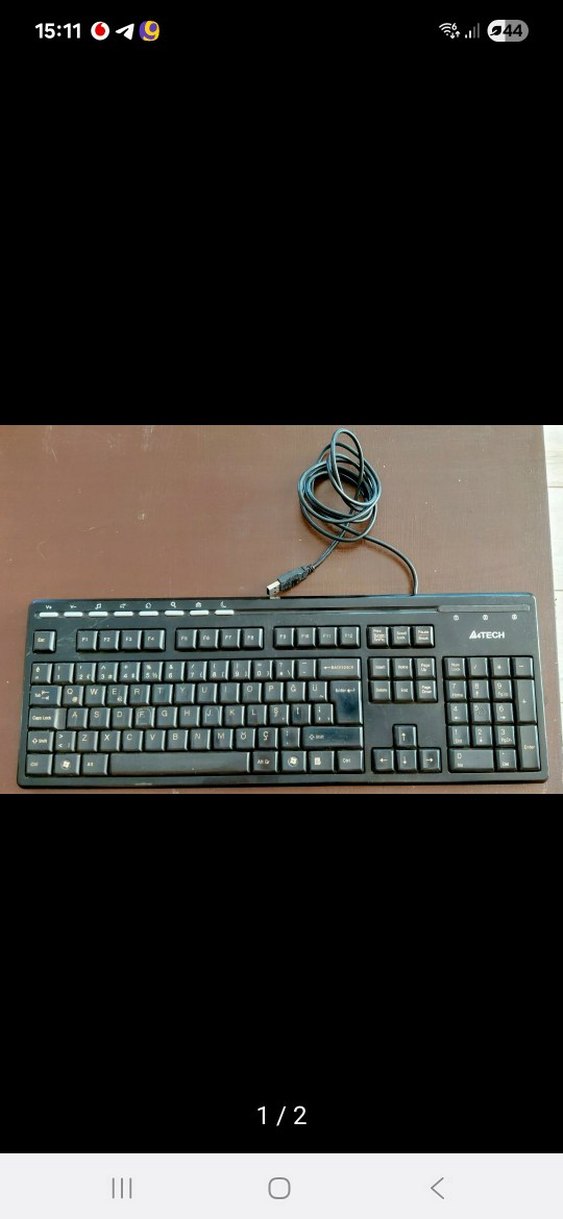 A4Tech markasına ait siyah kablolu klavye, tam QWERTY düzeni, sayısal tuş takımı ve fonksiyon tuşlarına sahiptir. USB kablo ile bağlanır. ⌨️ Az Kullanıldı, Sorunsuz