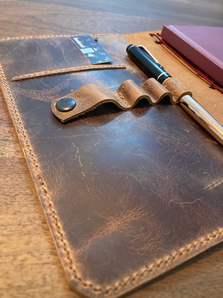 Hakiki deriden ve el emeği ile üretilmiştir. Kalem, kartvizit ve bloknot bölmelerinin yanında iki de defter kapasitesi vardır.