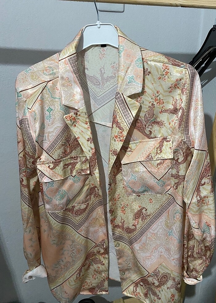 Hiçbir yerınde sorun yok güzek desenli saten gömlek