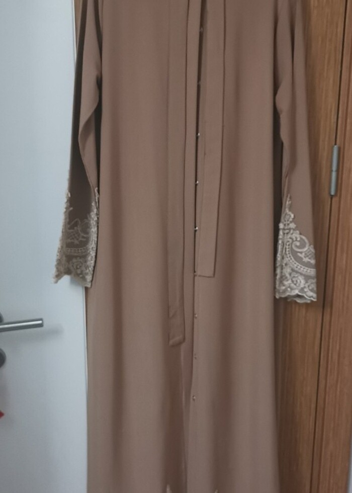 Taba rengi işleme detaylı abaya 38 40 42 beden uyumlu