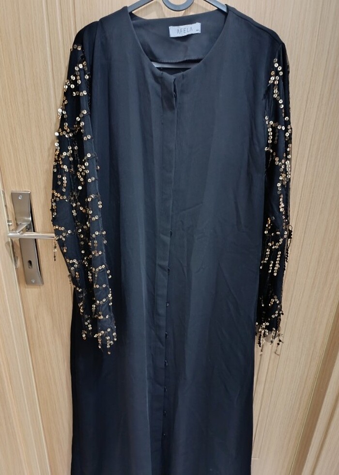 Bir sefer kullanıldı . Boydan düğmeli. Ferace olarak da kullanılır. Elbsie olarak da kullanılır. İnternetten ferace diye almıştım. Kardeşimin nisaninda giydim. 44 beden ama 42 rahat olur. Pullar da dökme olmaz rahatlıkla kullanabilirsiniz.