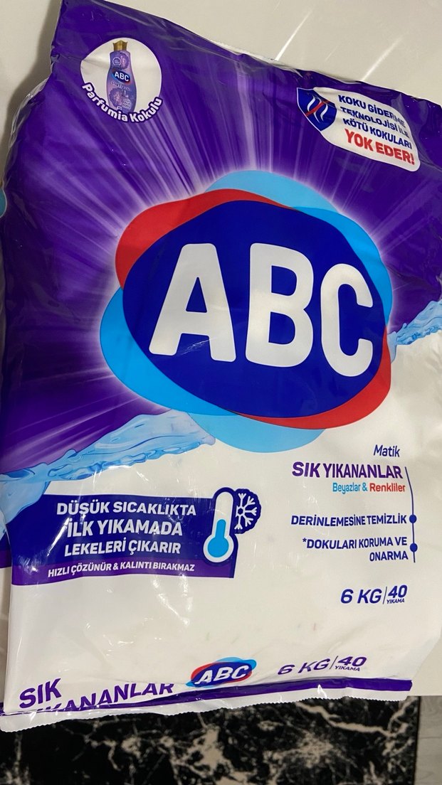 ABC Matik toz deterjan, sık yıkamalar için uygundur. Düşük sıcaklıkta ilk yıkamada lekeleri çıkarır, dokuları korur ve derinlemesine temizlik sağlar. 6 kg, 40 yıkama kapasitesindedir. 6 kg deterjan