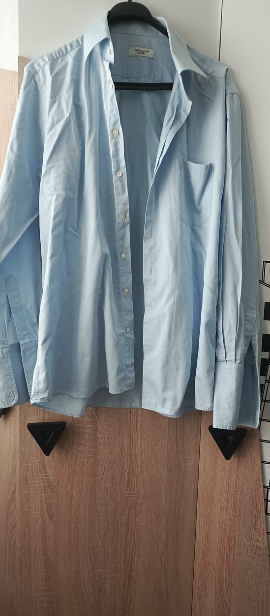Düğmeli, yakalı, uzun kollu, bol kesim gömlek. Yakasında hafif solma vardır başka hiçbir kusuru yoktur. iki koltuk altı arası: 56cm, uzunluk: 75cm Rengi son görseldeki gibidir.