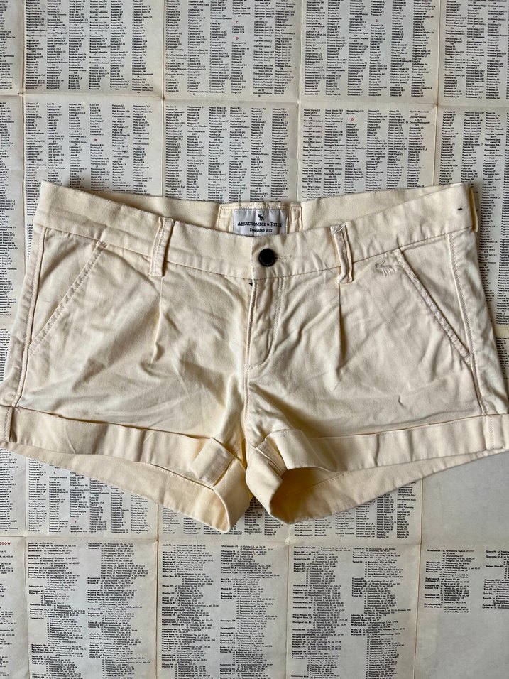Çok tatlı bir şort, düşük belli ve pamuklu. Kumaşı yumuşacık. Rengi ve modeli vintage bir hava katmış şorta. Tek kusuru arka cebinin birinde sarı renk ekstra belirgin. Bunun dışında kusursuz, az giyilmiş temiz bir şort. Ölçülerine bakarak alınız lütfen