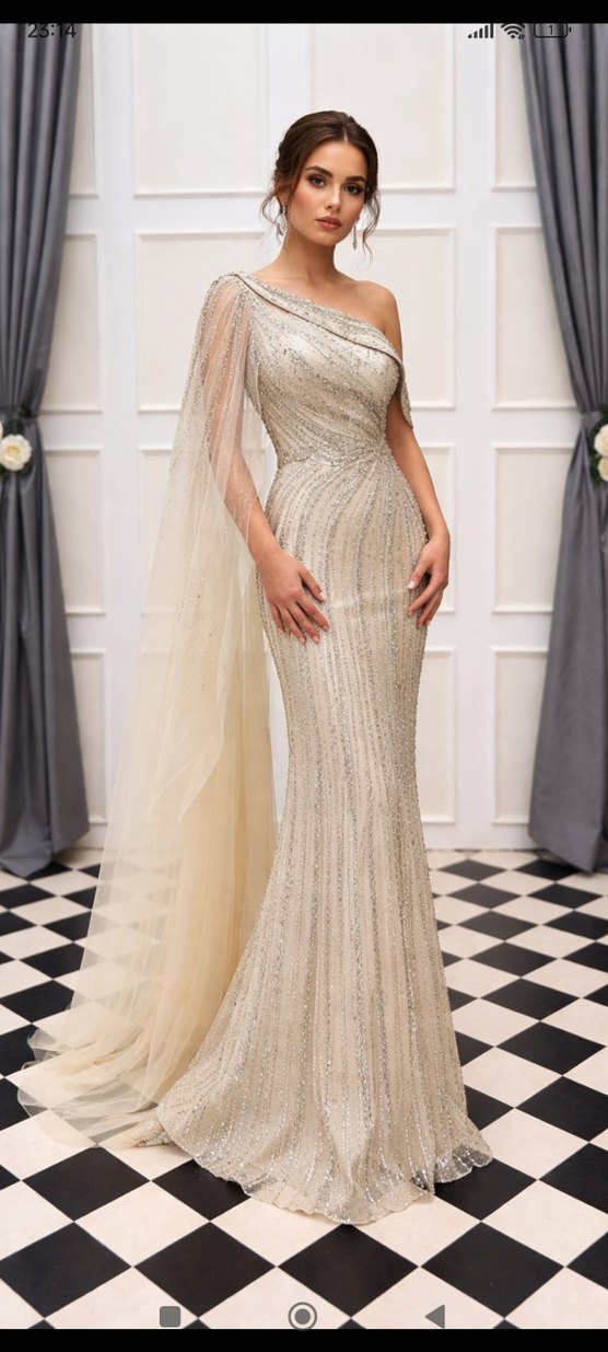 40 beden ama bozulmadan 38 en göre daraltılmıştir. tamamen taş işlemeli çok ağır herkesin nereden aldın diye sorduğu bir elbise olmuştur. bej renktedir. ✨