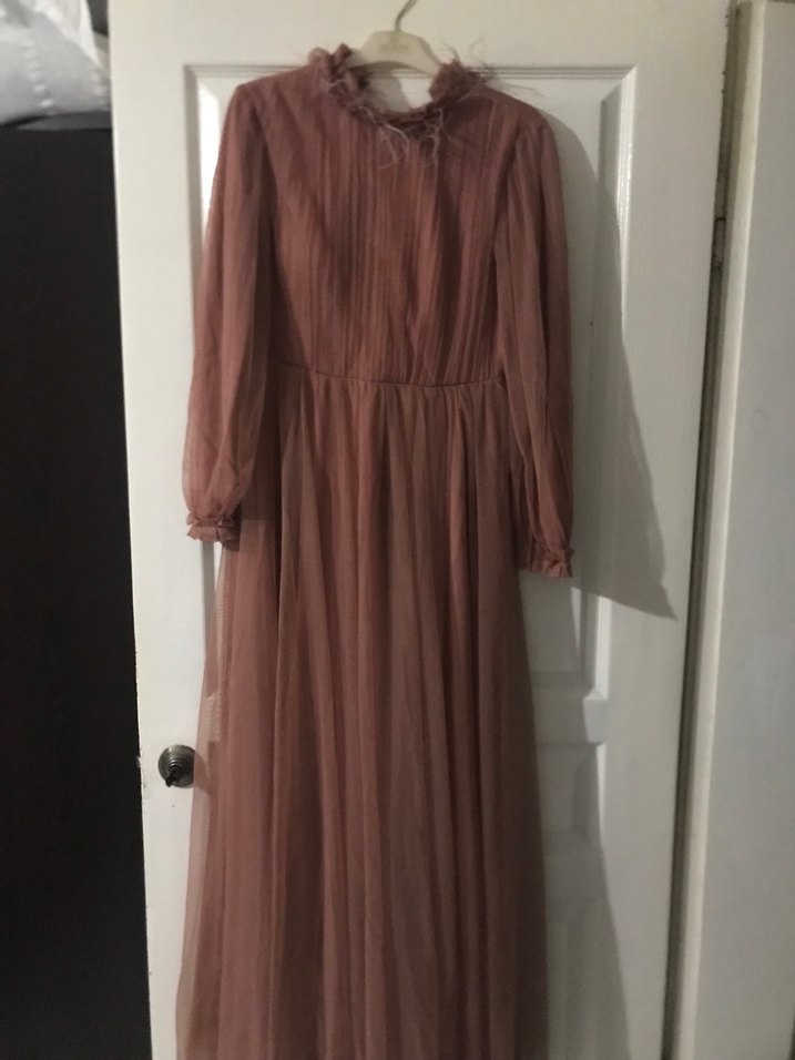 Eteğinde ufak bi yırtık var ama belli olmuyo bile somon rengi