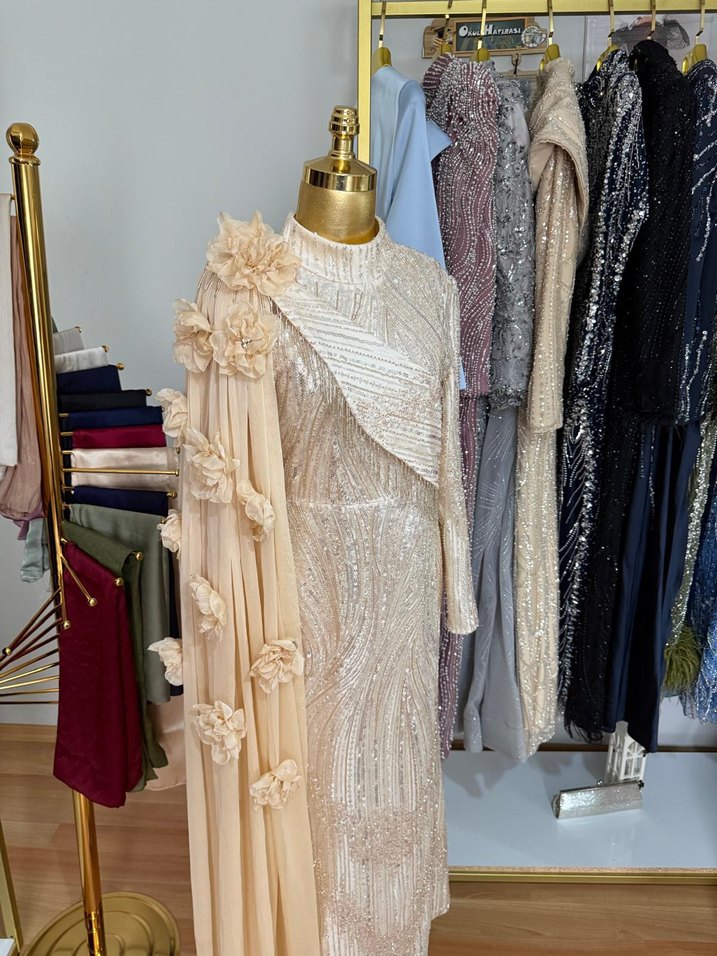 Özel dikim şal dahildir. Giy gönder. Özel günlerinize zarif dönüş sahliya ak harika abiye sizlerle