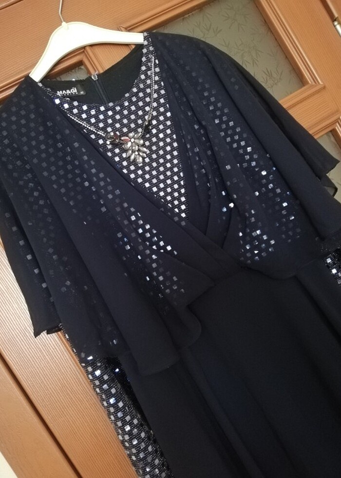 42 beden abiye. 3 defa giyildi. Arka tarafında ince çizgi halinde hafif sökülme var(resimde belirttim). #elbise #abiye #tesettür