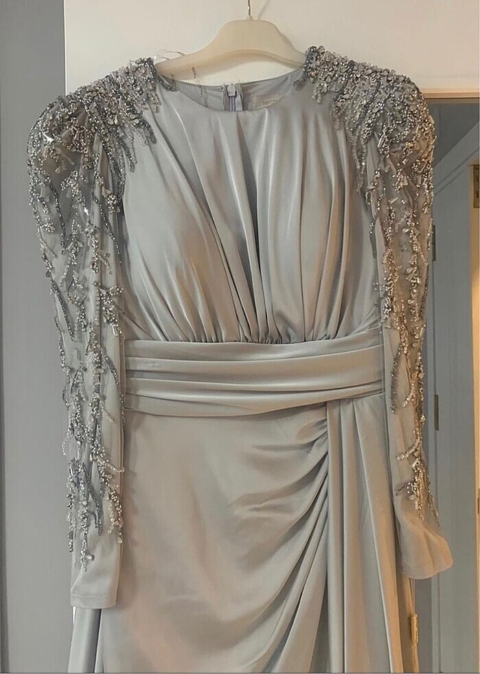 Saten arkası kuyruklu boncuk işlemeli göğüs kısmı drapeli 40-42 beden uyumlu 64-68 kilo arası giyebilir.Cengiz aktürk marka 1 kere giyildi temizlendi