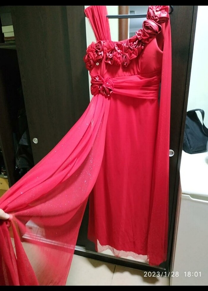 Az kullanılmış temiz sorunsuzdur boy ölçüsü 140cm göğüs ölçüsü 90cm kına elbisesi olarakta kullanılabilir