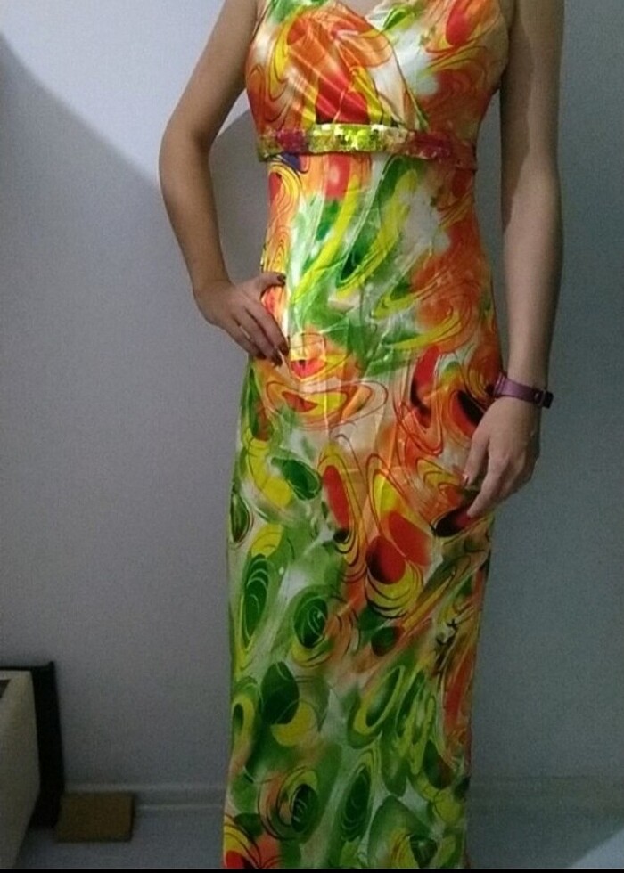 Sadece 1 kez kullanıldı. Satendir ve saten şalı var.