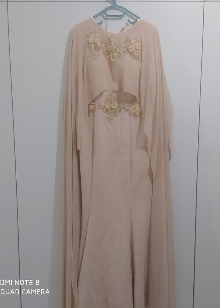 Krem rengi tüllü balık abiye 1 kez kullanıldı çok temiz taş detaylı güzel bir abiye 44 beden