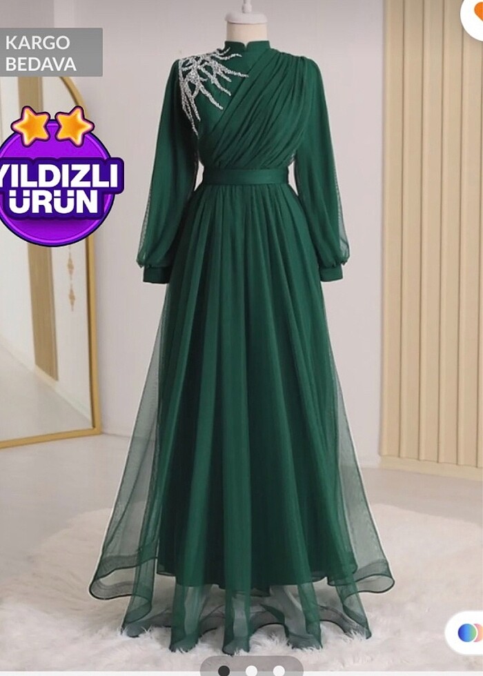 Bir kere abimin düğününde giydim yepyeni 3,4 saat giyildi trendyoldan 1200TL ye alındı 40,42 beden uyumlu kemerli beli lastikli olur yani şalıyla birlikte değildir salla birlikte 1000 TL