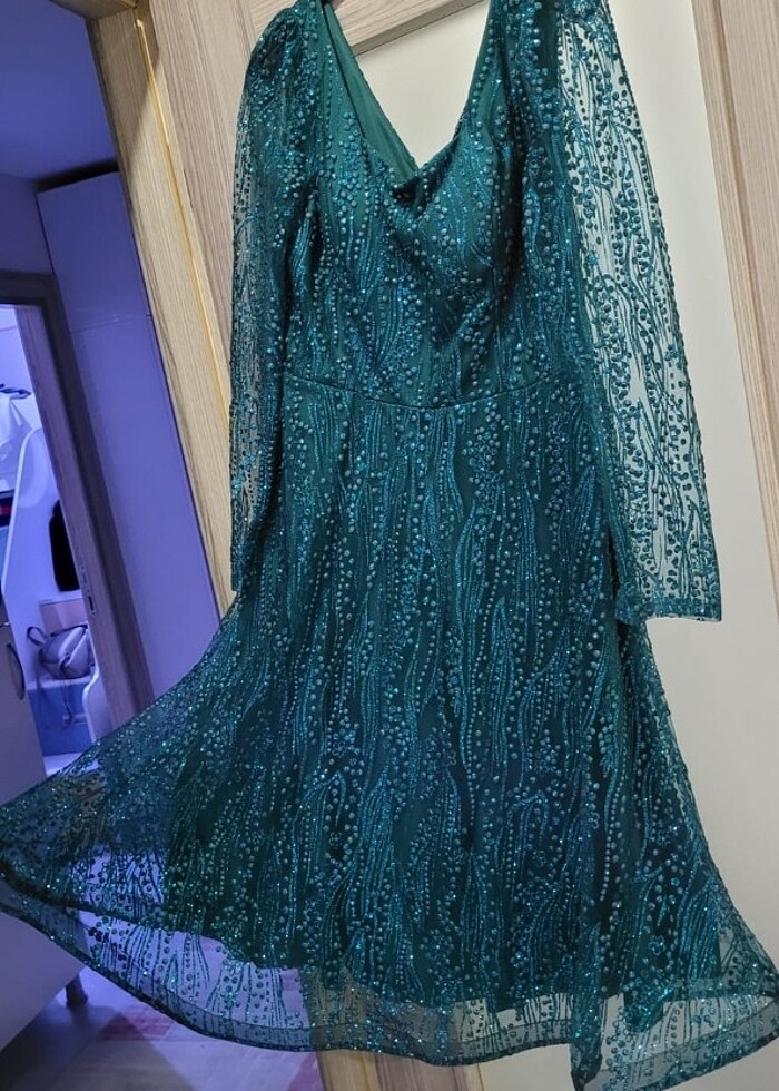 1 kez giyildi yeşil simli abiye üstteki duruşunuda görsele ekledim çok güzel duruyor