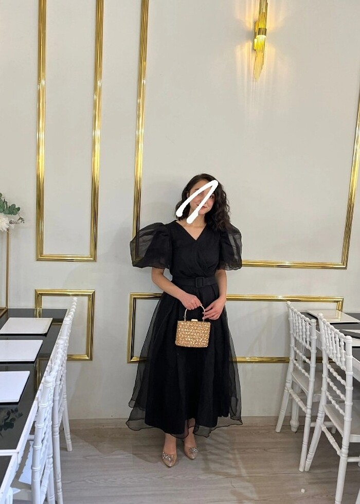 Siyah uzun tül balon kol elbise 1 kere giyildi.