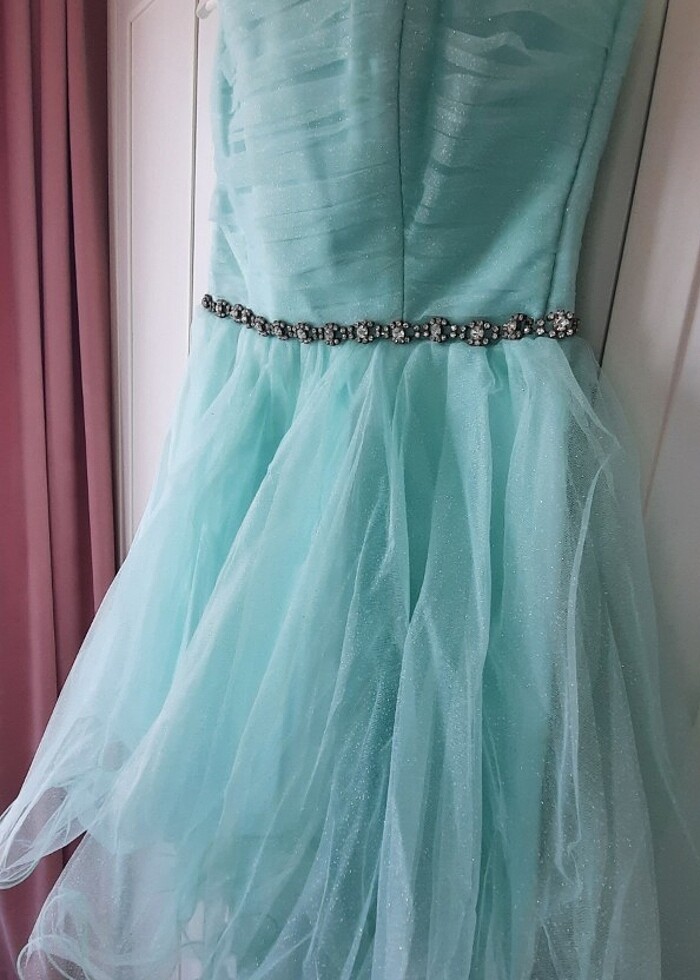 Toz mavi-su yeşili tonlarında masal gibi bir abiye, sadece 1 kez giyildi. 38 bedendir.
