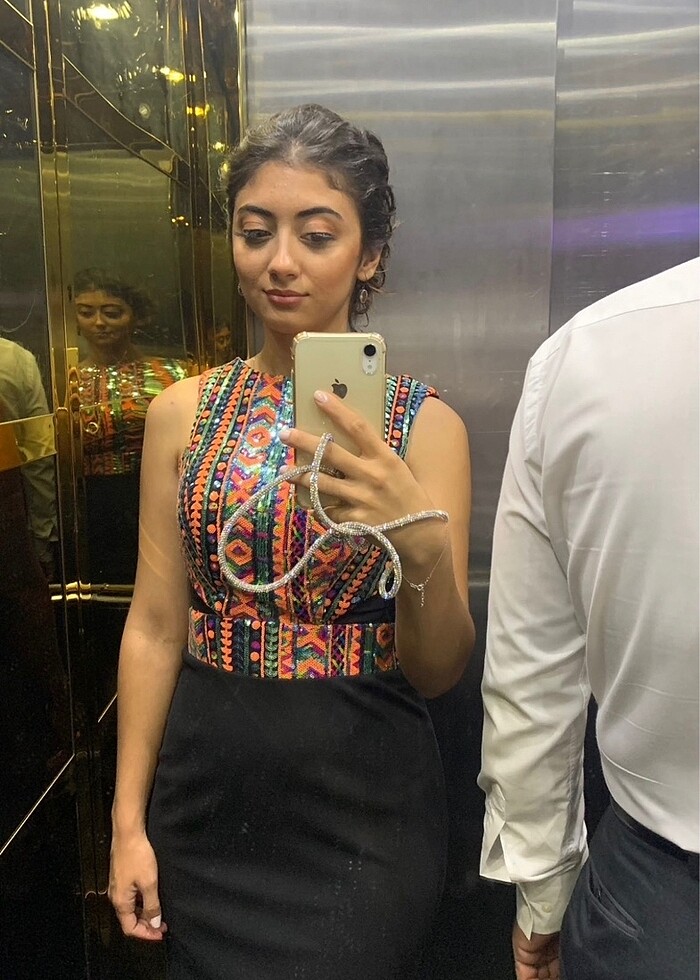 Üst pul payet abiye Small medium bedene uygundur esnek kumaş alt kısım. Modern şık abiye