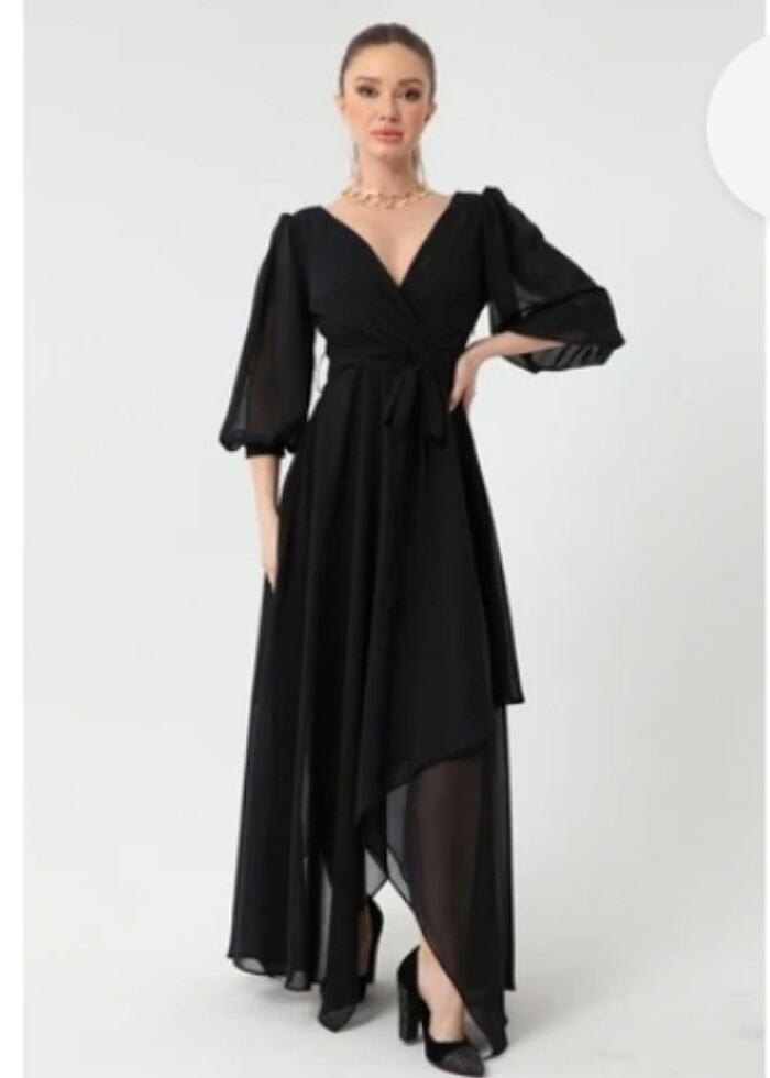 Lafaba marka volanlı siyah abiye bi kere nişanda giyilmiştir isteyene detaylı resim ekliycrm sadece halaydan dolayı etek uçlarında ezilme var ama belli olmuyor uzun olduğu için 38-40 beden giyiyorum kalıbı 1 beden dar olduğu için 42 aldım