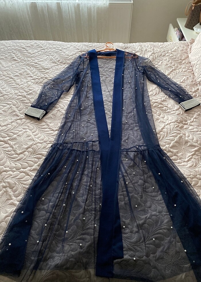 Ürün içine lacivert elbiseyle giyilmiştir şık ürün 1 defa giyildi