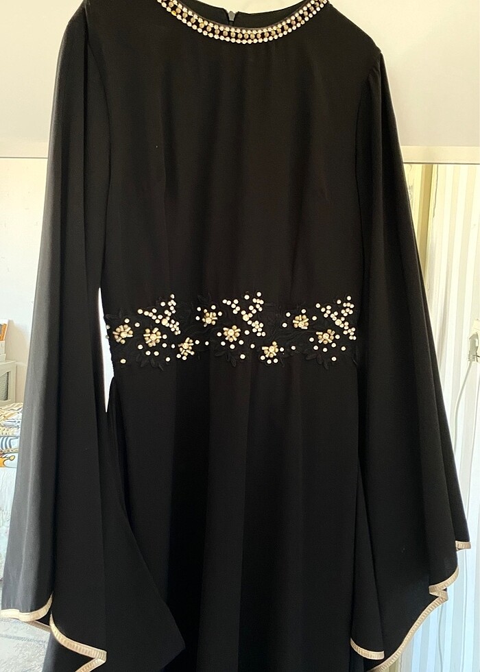Yeni hiç kullanılmadı, yarasa kollu siyah abiye