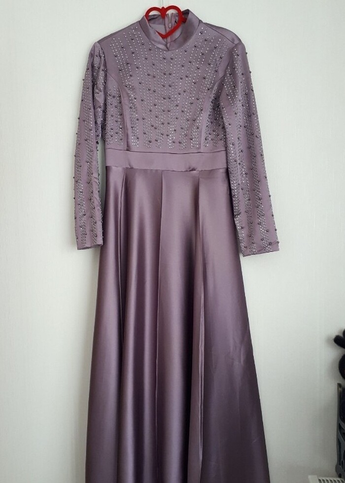 Sade şıklık arayanlara...nişanımda birkaç saatliğine giydiğim bir ürün o kadar zarif o kadar Naif duruyor ki herkes hayran kalmıştı üstüne aynı renk ipek şalıyla kombin yapmıştım. tertemiz duruyor hiçbir deforme boncuklarinda dökülme yok saten kumaş lila renkli 38 bedene uygundur alana hayırlı olsun marka temsilidir