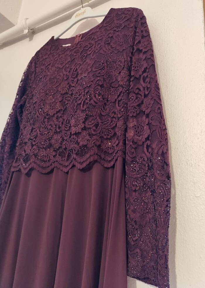 Sadece bir kere düğünde giyilmiştir. Her hangi bir sorunu yok kuru temizlenmesi yapılmıştır. Ölçüleri ise Boy: 1.37 Kol uzunluğu 60 Omuz: 41 Göğüs:86 cm'dir