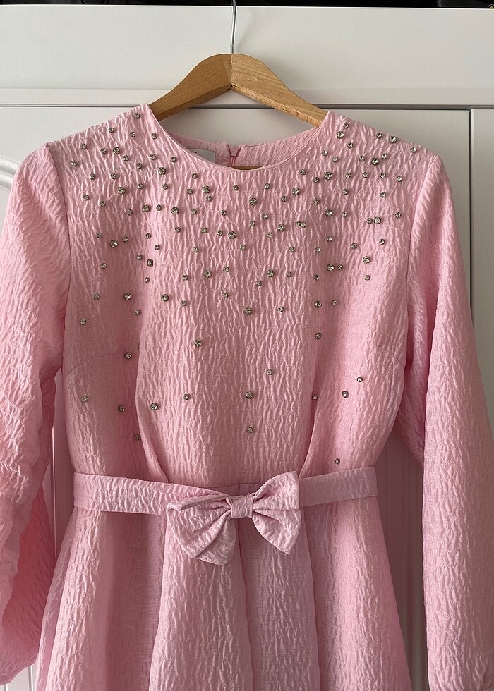 Bir kere nikahta giydim. Yepyeni sapasağlam duruyor. 6 aylık hamileyken giydim. Şalıyla beraber göndereceğim. 1.72 boyum ayak bileğime kadar geliyor uzunluğu