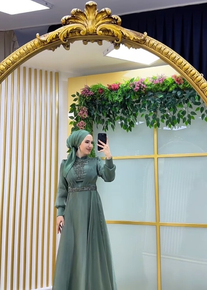 Mint yeşili abiye 42 beden bir kez giyindi janjanlı şalı da var pazarlık var