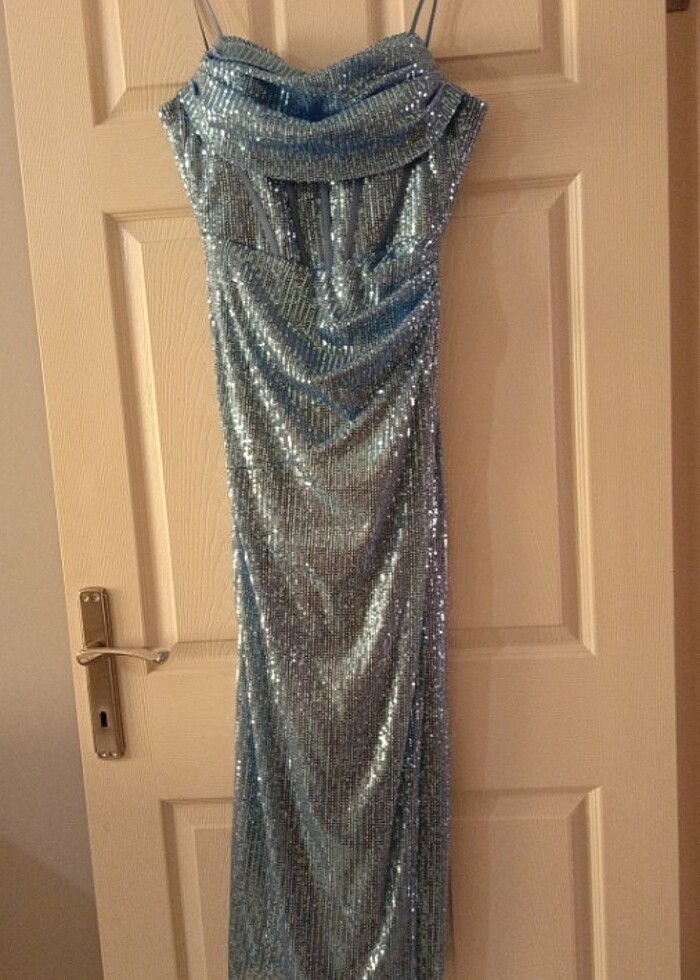 1gece giyildi.yıkanmış askıya kaldırıldı.çok temizdir.boydan çok az kesildi askı iceri dikildi.