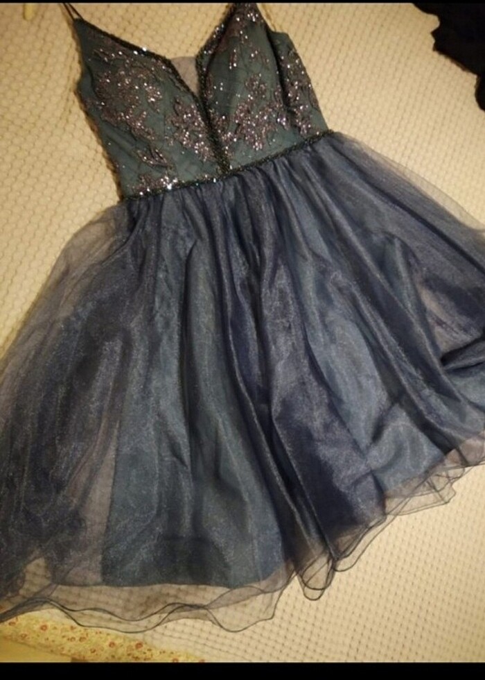Sadece 4 saat giyildi. Simli ve taşlı bir elbise. Diz boyudur,42 bedendir. Bana çok büyük geliyor,sadece 4 saat giyildi alındığından beri. 3 yıl önce Ali Fuattaki balo mağazasından alındı. Tek bir yırtığı veya çizgi yok, fermuarı çalışıyor.
