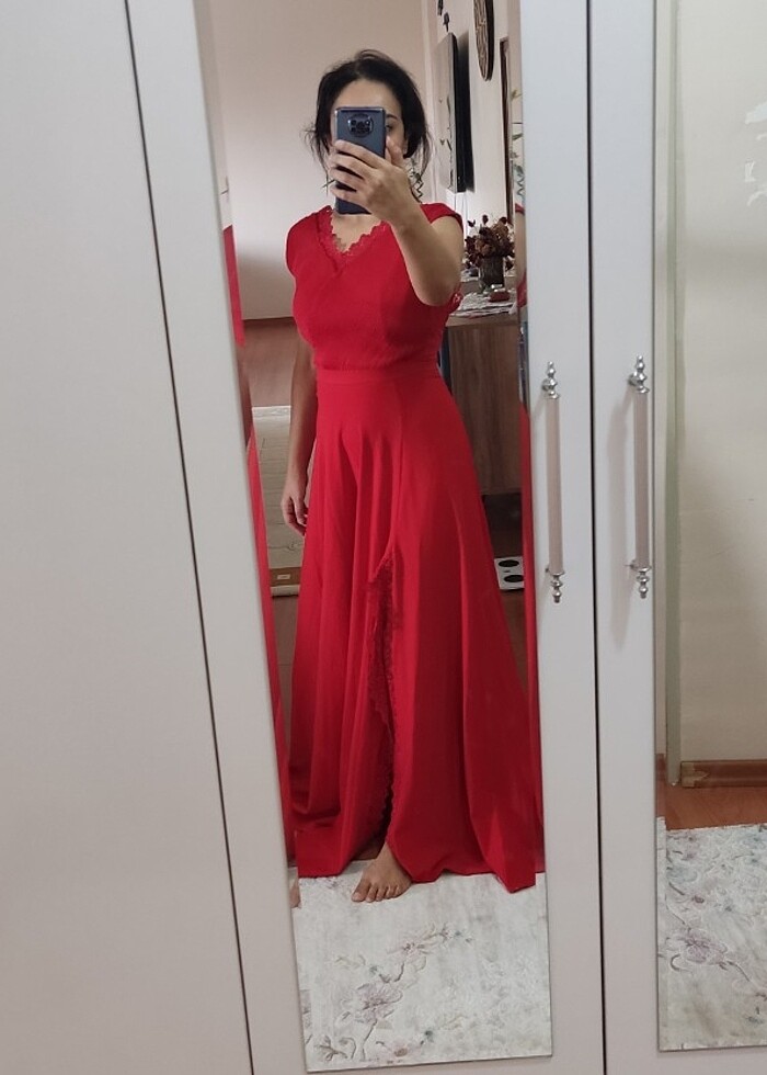 Gupur detaylı kalın askı yan yırtmaçlı sırt dekolteli uzun abiye