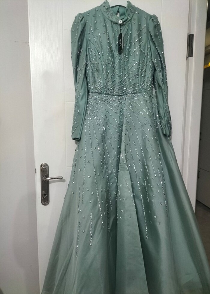 Çok severek aldım. giymek nasip olmadı hiç giymedim. Etiketi üzerinde tertemiz bir kıyafet ŞAL da dahildir